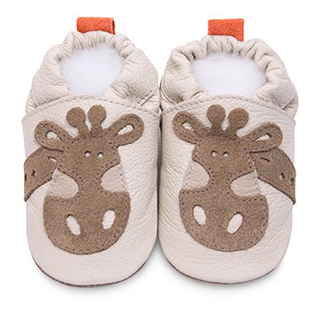 【英國 shooshoos】健康無毒真皮手工學步鞋_米色長頸鹿(公司貨)