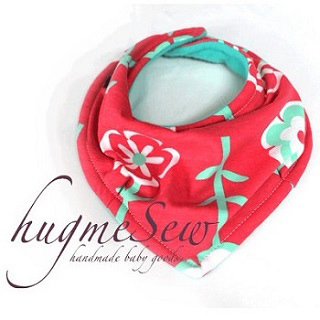 【美國hugmesew】純棉獨特領巾雙層圍兜(紅底花卉)