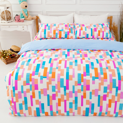 LAMINA 楓葉方格-藍 雙人加大四件式純棉床包被套組