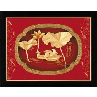 【開運陶源金箔畫禮品】純金鴻運系列-荷塘儷影(鴛鴦永浴愛河)