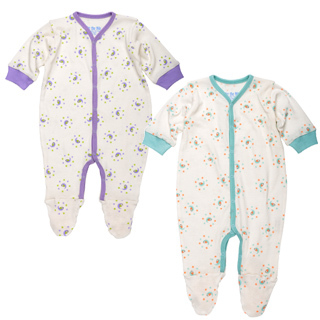 美國Under The Nile 有機棉長袖連身長褲套腳衣 -星月 (天藍+粉橘/粉紫+粉綠 2種色系)百分百有機棉 保暖透氣 呵護寶寶的最佳貼身衣物