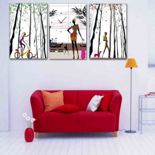 【TIME ART】靜音機芯三聯式時鐘 無框畫鐘 二畫一鐘掛鐘 M-025