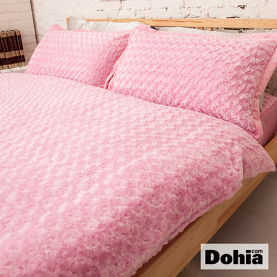 《Dohia-馨香戀粉》雙人四件式超柔玫瑰絨兩用被舖棉床包組