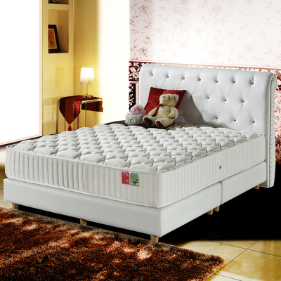 第八層:特級2.02mm線俓高碳鋼絲,由全自動獨立袋裝彈簧製造機生產,每顆彈簧皆經高溫熱處理,讓彈簧的彈性及耐用性達到極緻的發揮,並以強韌不織布壓縮包裝成型,提供身體有效的支撐。