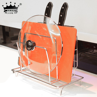 【king】不鏽鋼鍋蓋+砧板+刀具桌上型收納架(附集水盤)