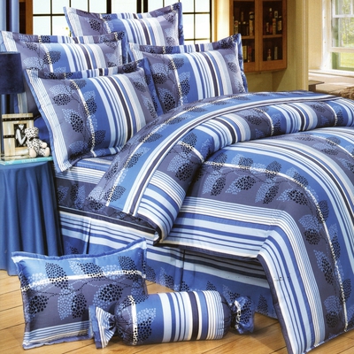 【葉葉相連】台灣製造(6.0呎x6.2呎)六件式雙人加大(純棉)鋪棉床罩組(水藍色)