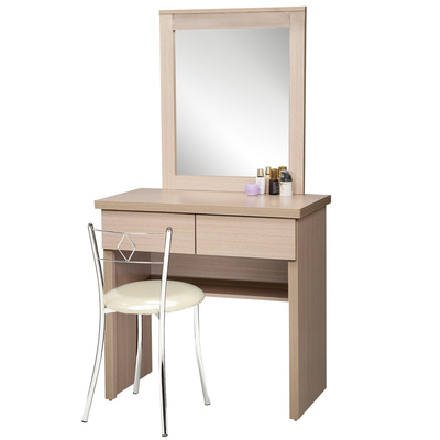 | 二日配 Homelike 朵拉化妝桌椅組(二色任選) 簡約風 Homelike 朵拉化妝桌椅組,極富現代感的造型,搭配白橡木、胡桃木兩種經典色系,3.5公分厚的堅實桌面,加上下方兩個抽屜、一個腳邊空櫃的收納空間,讓您輕鬆整理所有化妝用品,保持桌面乾淨整潔,擁有清晰專注的美麗心情! 經典款式就是好搭配,加上專屬之輕巧化妝椅,作為工作桌、書桌、NB桌都非常合適,除此之外,本系列尚有多款床組、床頭櫃、斗櫃、衣櫥……等等商品供您自由搭配唷! 整組配備由專業工廠製造,最安心的品質保證,購買後還有專人配送到府組裝的服務,如此實用百搭的空間輕美學設計,您還在等什麼呢?趕快把握機會吧!