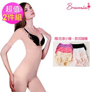 【波曼妮亞】2件組-精塑美-提花光澤布短袖美體衣 最簡單的懶人塑身法 立即看見好身材(顏色隨機)