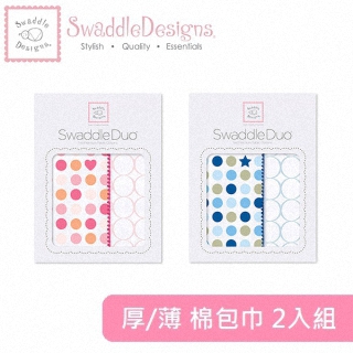 【SwaddleDesigns】法蘭棉絨+薄棉羅紗 嬰兒包巾2入禮盒組 #SD-182(二色可選)