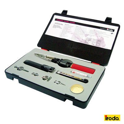 IRODA《火燄雙槍俠》雅仕精裝版 擁有六大功能的實用戶外工具組~《Iroda火焰雙槍俠超強版》具有烙鐵頭、熱切刀頭、熱烘頭、熱導風頭、熱鑿頭與噴燈接頭6種功能,不論是戶外生火、照明、電子材料焊接切割、水電、家電維修等統統可以用的到,採用瓦斯燃料,灌滿1次20毫升可連續使用120分鐘,本產品為歐美目前最時髦的萬用小工具, 戶外家中都可使用,實用性超強!