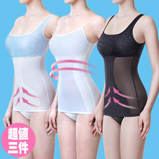 塑身坦克背心(黑)+塑身細肩帶背心(白)+NEW塑身坦克背心-白色蕾絲款