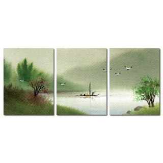 【橙品油畫布】三聯中國風藝術無框畫30x40(JD-30024)
