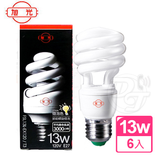 ◎品名:旭光?13W節能螺旋黃光燈泡 FSL13L-EX120(6入)
