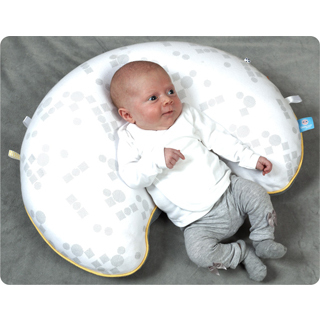 Snoozebaby 多用途月型枕,同時具有哺乳枕與寶寶靠墊和遊戲抱枕的功能! 上頭同樣具有各式各樣不同材質與顏色的布標,不但是你餵奶時的好幫手,也是陪伴寶寶成長的最佳夥伴喔!枕心與枕套可分離拆洗!