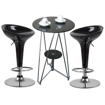 【SOHO】雙層-吧台桌椅組(1桌2椅)爍黑+黑色