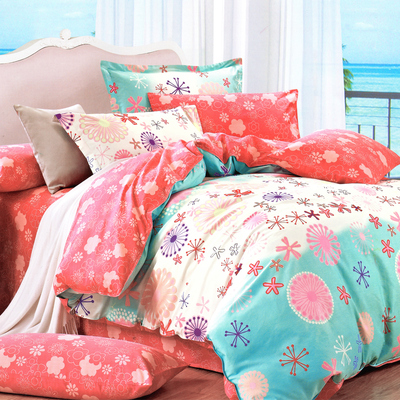 BELLE VIE 粉藍回憶 精梳棉加大四件式床包兩用被組