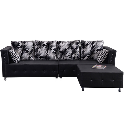 長秦Lounge 雅典娜L型皮沙發-黑色