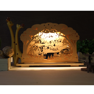每座森林裡都有個童話,童話裡的村莊住著許多小動物,跳跳猴總是高興的穿梭在樹林間,糖果屋裡住著的是小仙女,松鼠是樹洞的挖掘者,咕咕叫的貓頭鷹是夜晚的報時器,小兔兒優雅的遨遊在月色下,在滿天星斗的夜空下作最溫暖的陪伴,童趣味十足的童話森林裡,保留著童年的純真。