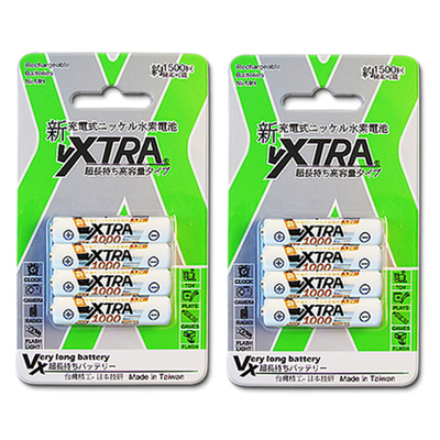 商品訊息描述: VXTRA ★4號高容量1000mAh低自放鎳氫充電電池(8顆入)