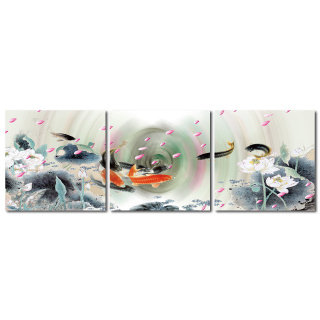【橙品油畫布】三聯風水無框藝術掛畫40x40cm(J4037)