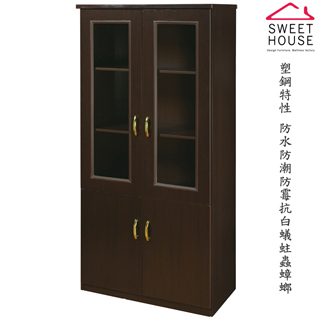 <甜美家>塑鋼書櫃系列,亮麗精緻的造型,作為書櫃或展示櫃皆為極佳之選,四門設計能有效防塵,也有效保護您的愛書及收藏品。