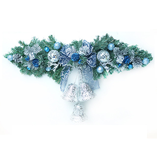 【聖誕裝飾特賣】聖誕幸福雙鐘裝飾樹藤(藍銀色)(大型)(壁飾門飾)