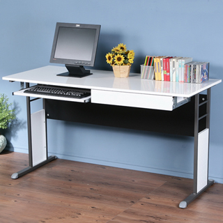 【Homelike】巧思辦公桌 炫灰系列(白色亮面烤漆140cm-附抽屜、鍵盤架)