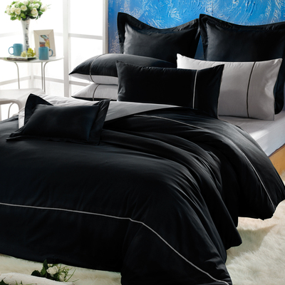 義大利La Belle 前衛混搭 加大四件式被套床包組-黑x灰