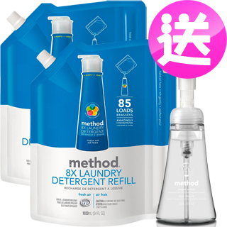 【Method 美則】八倍濃縮洗衣精補充包1020mlx2包(送水甜心洗手露300ml)