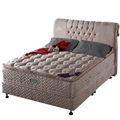 | 德國SCHROERS奈米抗菌+乳膠獨立筒床組(四線雙人) 德國工藝、台灣製造 ★產品特色 1.國際級的技術及品質,讓您可以輕鬆擁有。 2.使用頂級內材,與一般內材價差十倍以上。 3.最新緊縛式工法,有別於傳統堆疊式,耐用度更佳。 4.比一般床墊多出三倍以上的高膨度立體車花,更透氣、更舒適,頂級床墊才會採用,因技術性及成本高,材料也需要更頂級才能達到效果。 5.張力麵包床,讓床墊更緊實,表面呈現弧度,支撐性比一般做法佳。 6.使用剌繡床標無法撕除,就像床墊特有的紋身碼,避免混充現象,一般小型床墊工廠不會投資此設備。 7.全系列內襯最新奈米抗菌布,實驗証明有效抑制包括金黃色葡萄球菌、肺炎桿菌等難纏的菌種,讓床墊保持衛生,睡的更健康。 8.本款內襯天然乳膠,讓柔軟度更佳,並具有天然的透氣及抗菌效果。 9.使用蜂巢式獨立筒,支撐無空隙,更能反應身體曲線,給予強韌的支撐。 10. 四線設計,上下床面皆增加一層舒眠層,讓接觸的質感更輕柔,服貼度更佳,膨鬆渾厚的質感,提供高級床墊的享受。 11. 床組包含床頭片、床墊及木箱式歐式床台,整組同花色更有整體感及高貴的氣質,免費配送到府及組裝。 12.可比較其外觀工法及使用的材質,在家具店的售價約需85000元