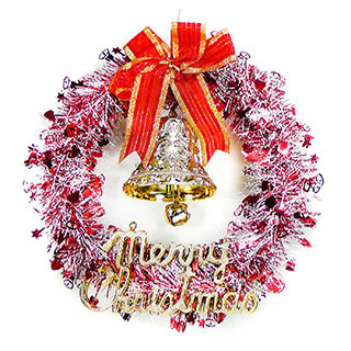 【聖誕裝飾特賣】10吋紅白歡樂金蔥浪漫雪紗花圈