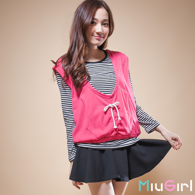 【MiuGirl】二件式連帽棉質上衣組(玫紅)