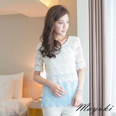 東京著衣-MAYUKI 配色鉤花層次雪紡上衣(共二色)-4007538