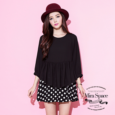 上衣 波浪下擺雪紡上衣(共三色) Mira Space