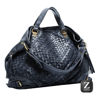 【日光手感】納帕頂級油蠟皮手工梭織經典包(霧藍灰)