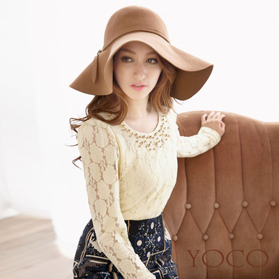 東京著衣【YOCO】釘珠透膚玫瑰花蕾絲上衣-S.M(共二色)