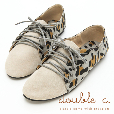 ☆double c.華麗冒險☆豹紋繫帶休閒鞋-愜意灰