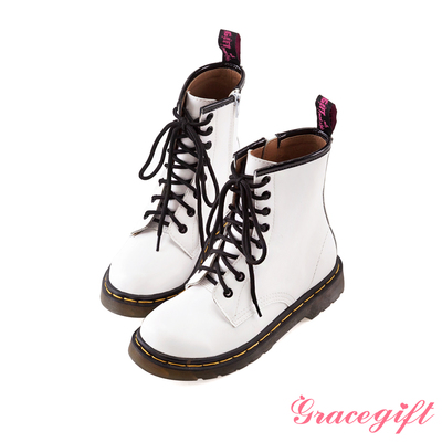 Grace gift 人氣不敗!復古牛皮拉鍊馬汀靴 白