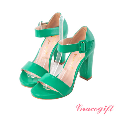 Grace gift豔夏玩美-繽紛俐落感韓系高跟涼鞋 綠