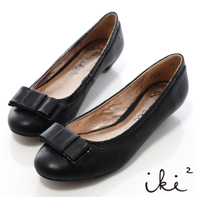 iki2典雅女神-蝴蝶結拼接羊皮低跟娃娃鞋-經典黑商品網址: