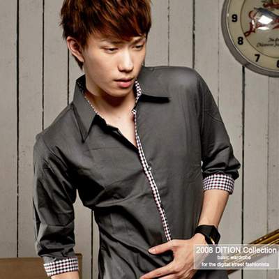 ●。亮眼的韓系彩色接格襯衫,小編超推薦深灰色~~很適合學生以及上班族型男喔。●