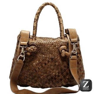【日光手感】瑪西頂級油蠟皮手工梭織巴黎兩用包(伯爵茶色)