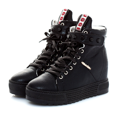Entifa-歐美私著?鉚釘魔鬼氈綁帶厚底球鞋-黑