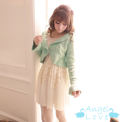 【Angel Love】暖暖兔毛荷葉邊針織開襟外套 (綠色)