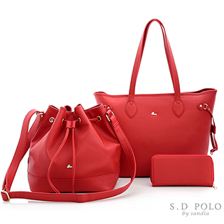 【Cosa】典雅十字紋系-時尚百搭包-夾超值三件組(經典紅)