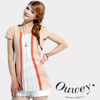 【現貨 日本portcros】折縫條紋圓領短袖連身洋裝(L-LL)