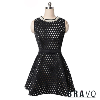 奧黛麗赫本風格 復古珍珠領縷空大圓裙襬洋裝 共三色 Bravo商品網址: