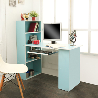 前兩天在家用專賣門市看到【Akira】粉彩系防潑水雙向4+2格書櫃型書桌_俏皮藍(附鍵盤架),覺得很想刷去下!