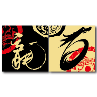 【橙品油畫布】二聯式龍紋無框藝術掛畫50x50(JD-50068)