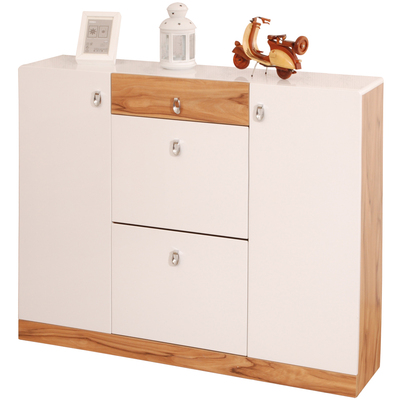 | 【Bonne idee】蘋果木系列-薄型單抽四門鞋櫃 設計與藝術溶為一體的傑作,注重簡約的設計以及家具的實用性。是Bonne idee鞋櫃系列一貫的理念,為繁忙的都市人營造一個舒適的居住空間。擁有自然優美光澤和蘋果木紋理,配搭簡約的設計,為現代都市人打造出涵養人文的家居生活品味。 技術充分的運用在家具設計的領域,細微處顯露不凡 低調奢華的設計與質感。充分的展現出Bonne idee鞋櫃系列對創造的那份細膩的美學!外型設計時尚簡潔、清新俐落,堅持以充滿活力與創新的角度與視野來看待設計,以多種不同的材料營造出層次與美感、能盡情展示出個性之餘,不同材質之間還充分增加了觀感與質感上的層次演繹,令 Bonne idee鞋櫃系列在簡約之中顯出一種深層次的情感,新奢華風格兼融古典與現代的特色。 對於細節的堅持,抽屜五金採用二段式鋼珠滑軌,獨特油壓式緩衝門鈕設計防夾手,靜音又安全,通過5萬次拉合測試,擁有完美的比例、蘋果木紋皮美耐板具耐高溫、防塵、耐磨、耐撞擊、易保養,木質材料的細膩感觸以及對細節的把握,PE底漆+PU高硬度亮面烤漆處理,晶瑩亮麗,細緻的光澤與觸感,不易汙損。 高級鍍鉻水滴造型把手,附塑膠腳粒、防刮傷、易搬動。附一層固定隔板、共五層活動隔板,特殊斜式設計,依鞋子高度調整高低距離,輕鬆收納較長鞋子或高跟鞋,右側門內附一隔板可收納物品、長靴…..等,層板及抽屜邊緣採PVC安全邊條,防刮手貼心設計,整體採無銳角安全圓弧線條,美背式貼心設計,不易發霉,三個透氣孔設計,保持透氣通風,不易留有異味,容量:18雙鞋;薄型鞋櫃特別附壁虎螺絲使固定牆面,預防地震傾倒設計。蘋果木紋搭配靚漾亮白,新奢華風格兼融古典與現代的特色;現代語彙,極簡卻豐盈的內在,展現Bonne idee鞋櫃空間意涵。
